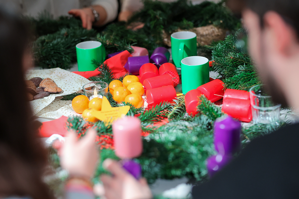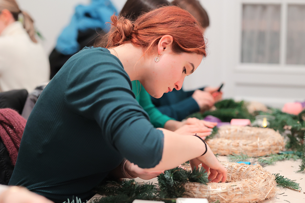 Adventkranzbinden mit StudentInnen der KHG