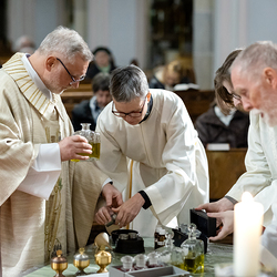 Am Mittwoch feierten die katholischen Gemeinden und Gemeinschaften des 18. Bezirks im Rahmen einer speziellen Messfeier, die von Radio Maria übertragen wurde, in der Pfarrkirche Weinhaus die Verteilung die vom Herrn Erzbischof geweihten Heiligen Öle. Dechant P. Arkadiusz Zakręta CM stand der Feier vor. Wir waren mit der Kamera dabei.